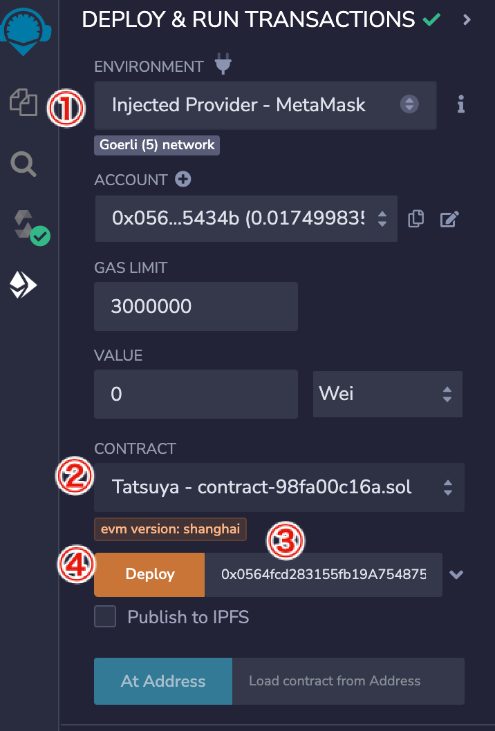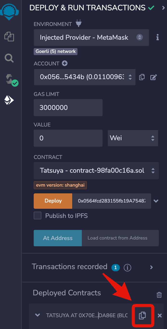 MetaMask が立ち上がる。 - CONTRACT : さっき作ったコントラクト