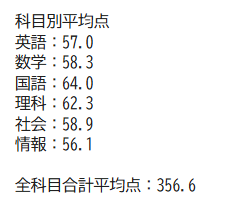 (追記)科目ごとの平均点と、合計点の平均点も出力するようにしました。