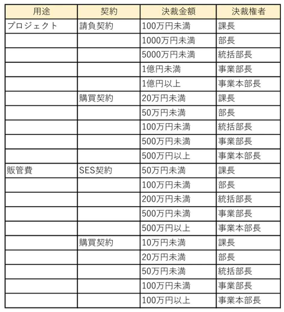 あらかじめ、決裁権限を登録したExcel表をPDFにして、(以下PDFの内容)