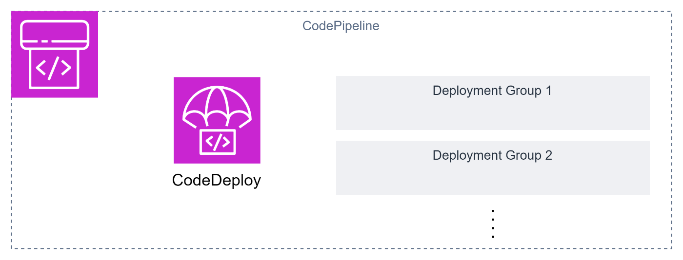 - 1つのAWS CodePipelineに1つのAWS CodeDeploy。並行でデプロイしたければAWS CodeDeployのデプロイメントグループで対応する。