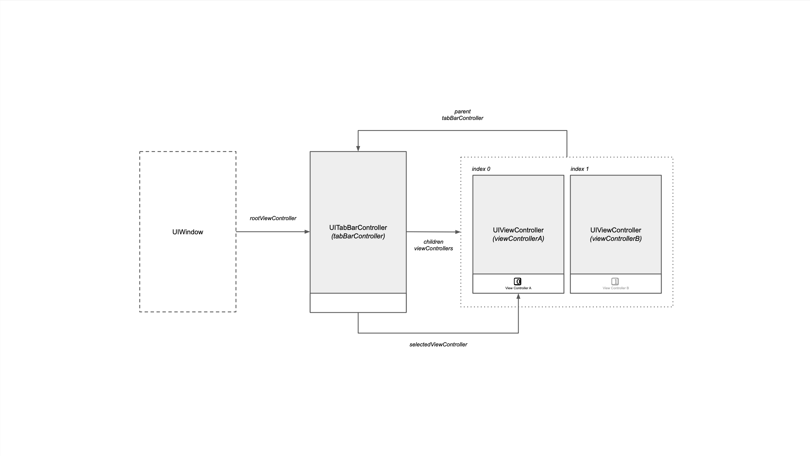 tabBarController.children→[viewControllerA, viewControllerB] -