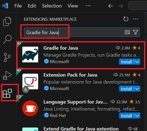 Visual Studio Codeに「Gradle for Java」を追加します。