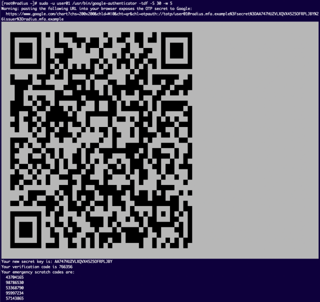 [root@radius ~]# cat /mnt/home/user01/.google_authenticator