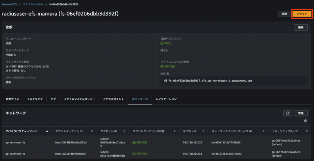 4.3.1.マネジメントコンソール(EFS)ページのアタッチを押下