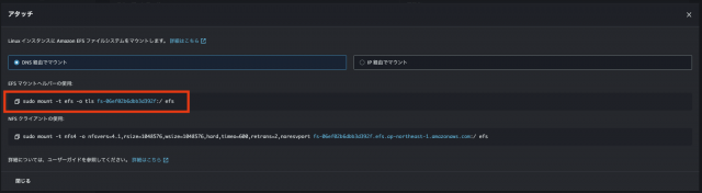fs-【各自ポイント先】:/ /mnt/efs efs _netdev,nofail,noresvport,tls,iam 0 0