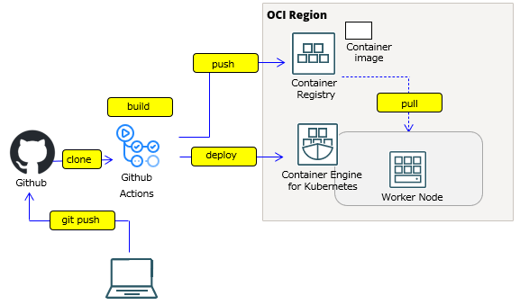 以前投稿した「GitHub Actionsを使用してOKEへのDevOps実施」を元に以下の点を改善しました