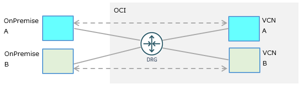 Oracle Cloud Infrastructure(OCI)の動的ルーティング・ゲートウェイ(DRG)を使って様々なネットワーク構成を検討しました