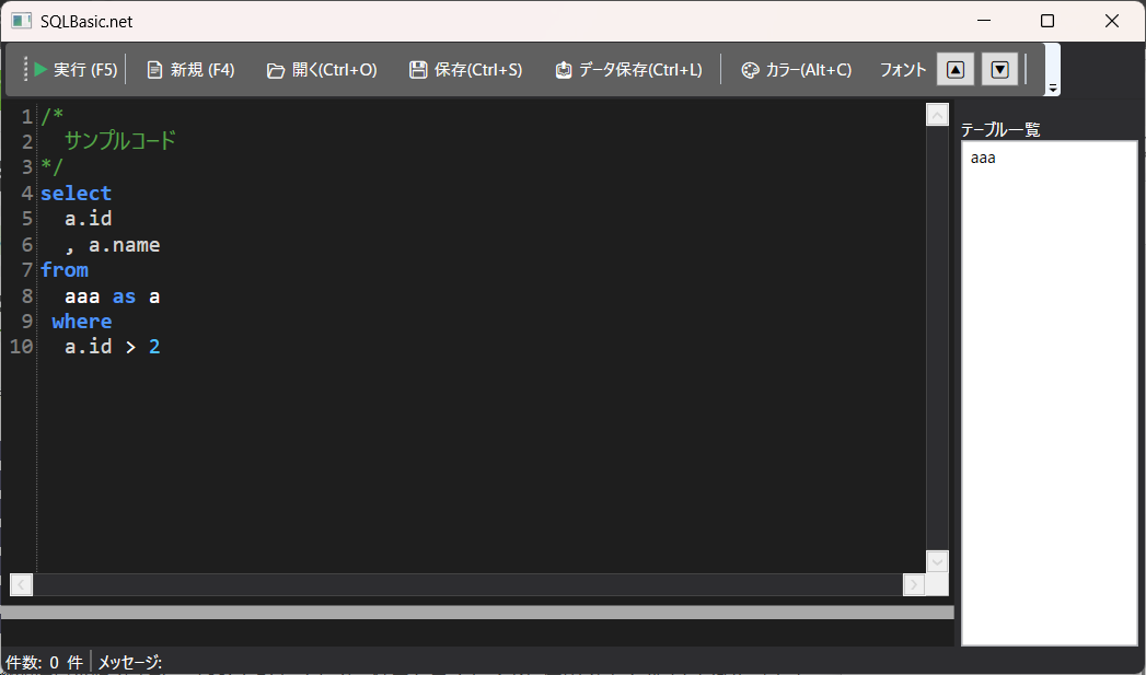 でもって、日曜開発で C#でシンプルな学習用SQLエディタを作ってみました。