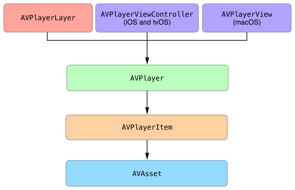 素で実装する場合は、AVPlayerの状態をKVO監視しDelegateパターンに沿ってViewControllerに状態を通知するようなイメージです。