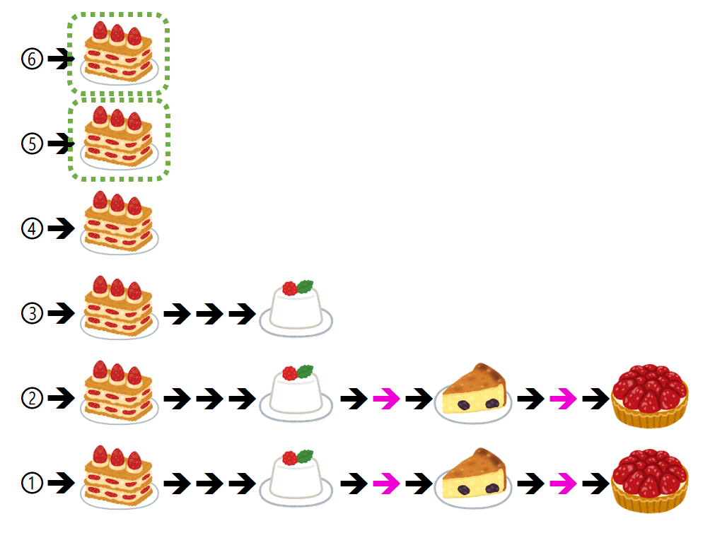 同じケーキを連続で食べるのは嫌だ!という問題です。