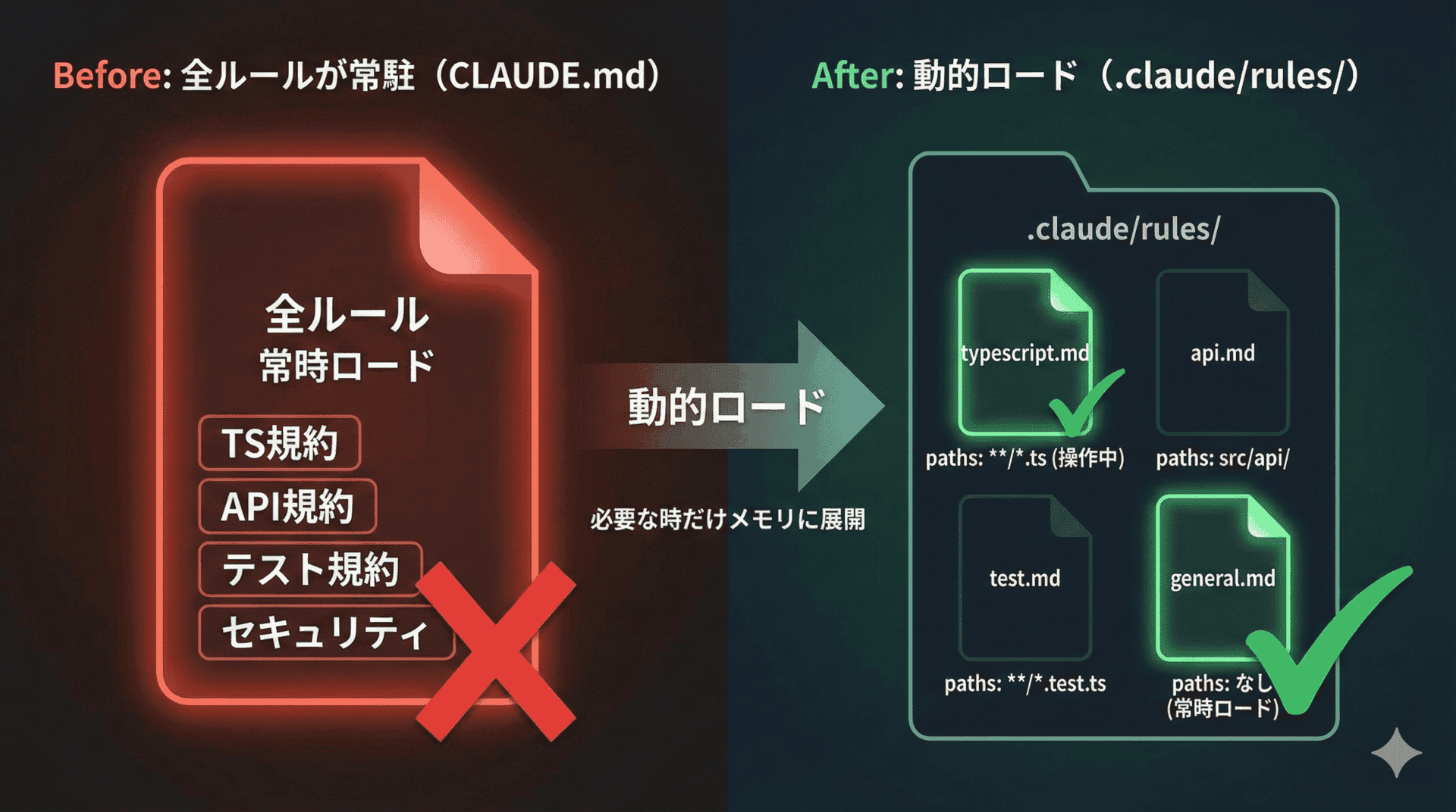 .claude/rules/で解決できる - paths指定による動的ロードでコンテキストを節約