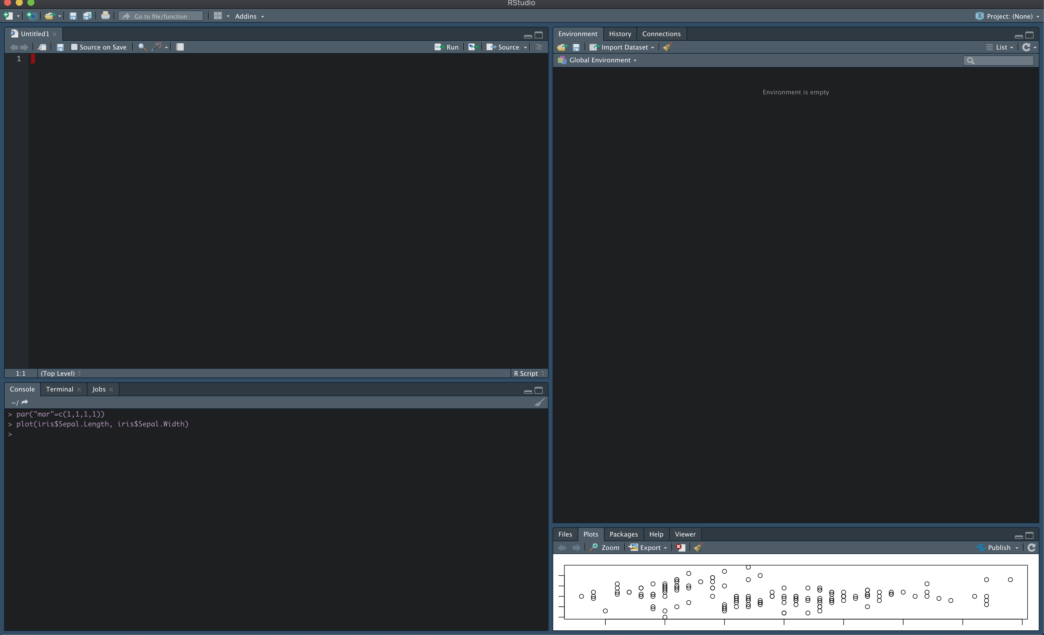次のように、Plotsウィンドウが小さい場合にグラフを描こうとすると、plot.new() でエラー: figure margins too largeが発生して描画に失敗する。