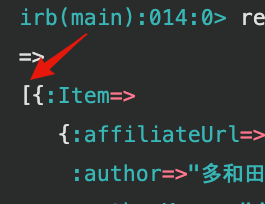 irb(main):028:0> result[:Items].first[:Item][:title]