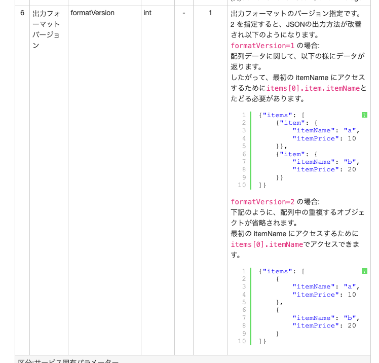 出力フォーマットのバージョンを切り替える事で、もう少しシンプルな呼び出しが可能になっているようです。