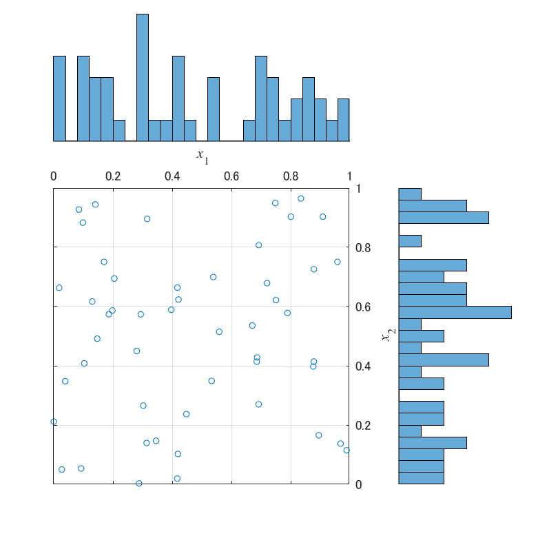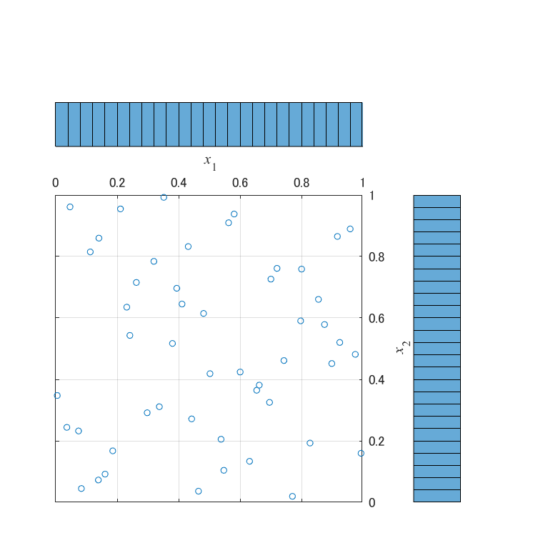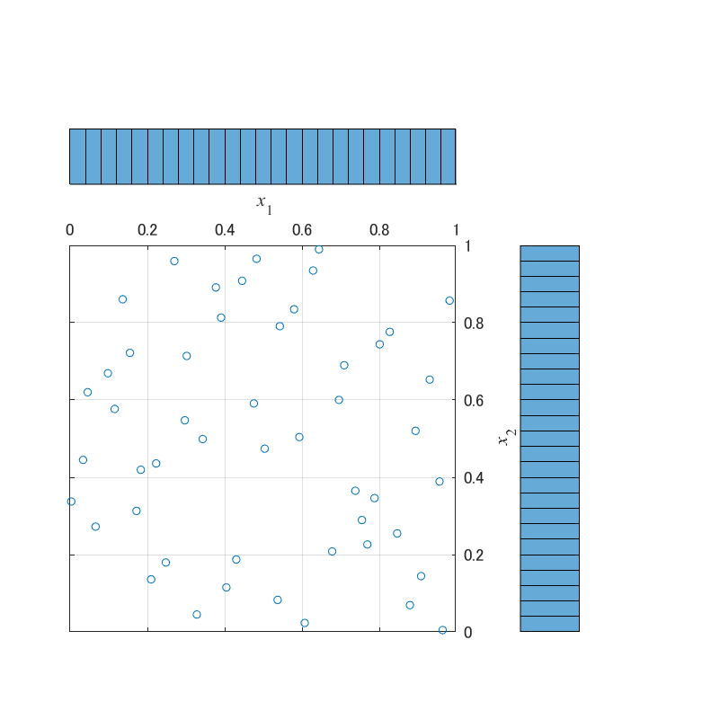 これは,LHSによって生成される点群が持つ,特徴的な性質になります.