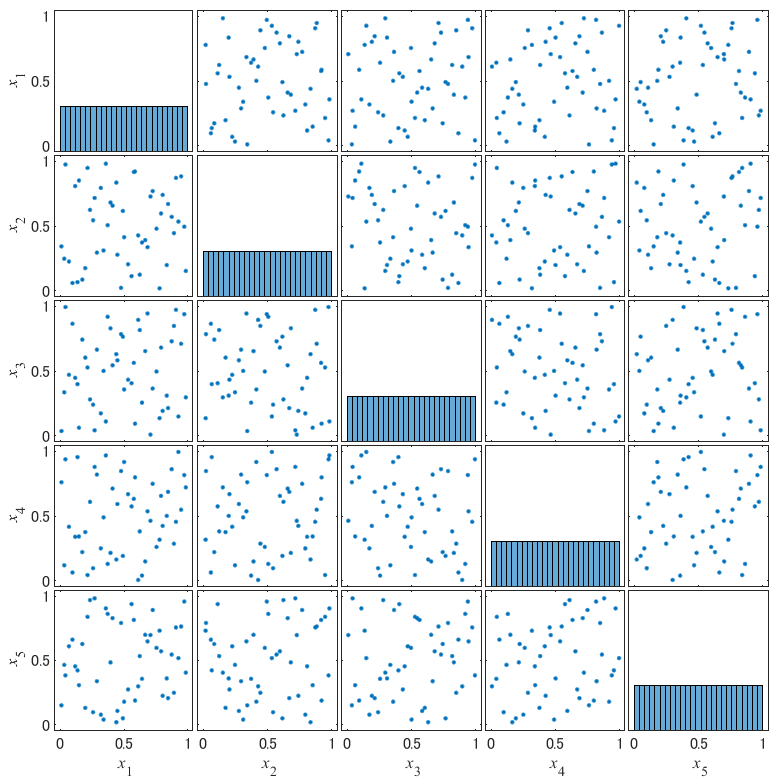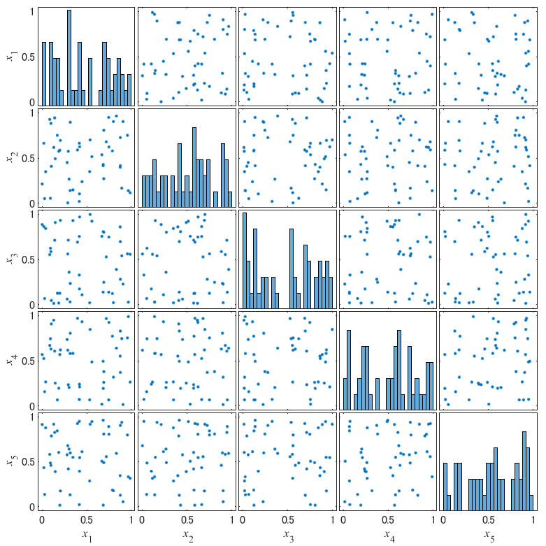 LHSによって生成される点群の性質と効果を視覚的,数値的に見ていきます.