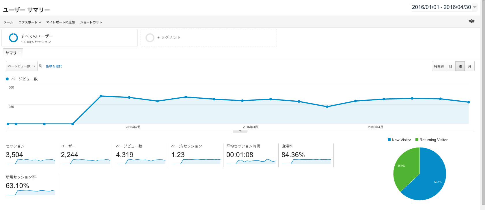 GAを見てみると、300 PV/Week というしょんぼりした数値・・・😞