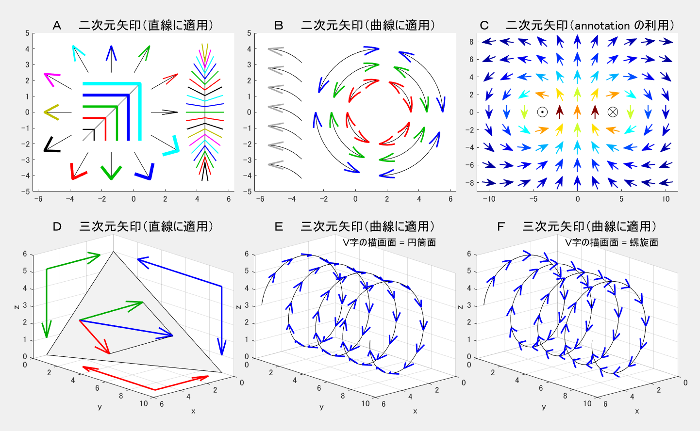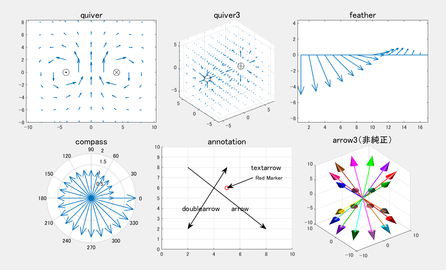 図1 MATLABに既存の矢印関連コマンド