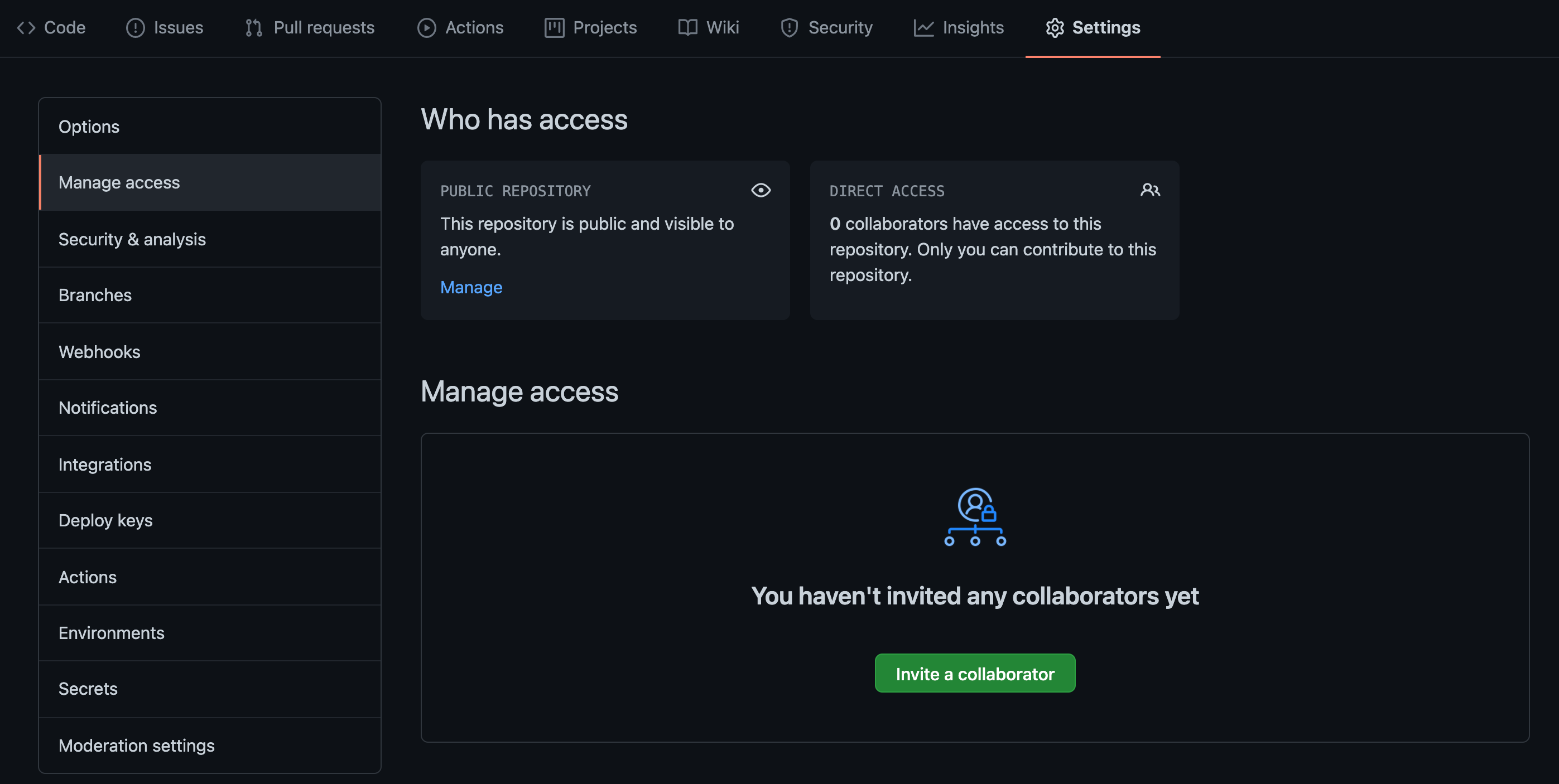 Settings > Manage access > Invite a collaborator