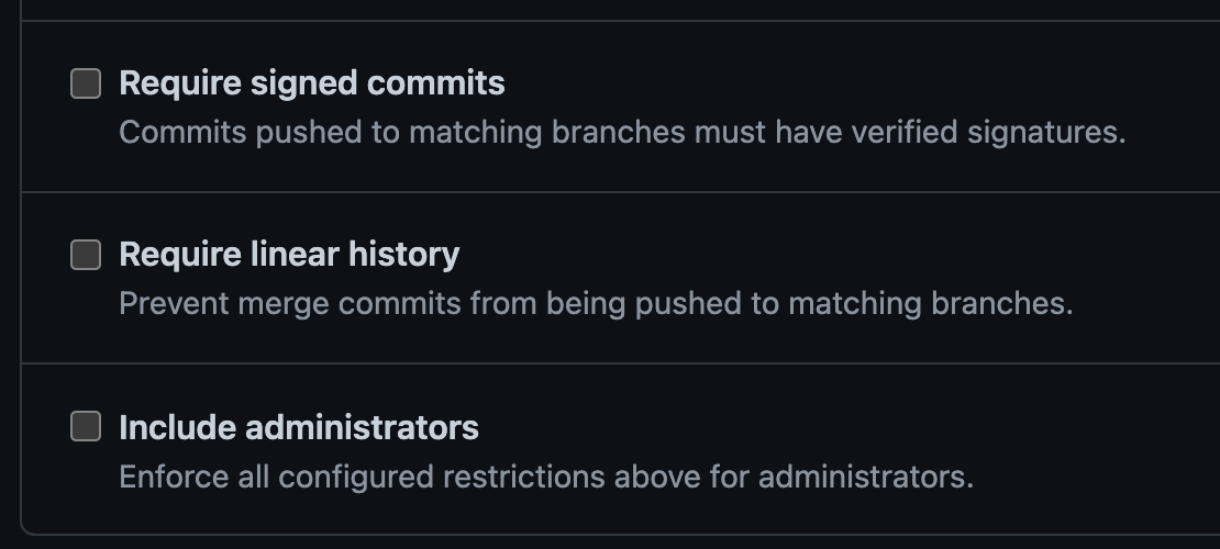 これを設定してしまうとブランチを保護する意味がなくなるので必ず無効化しましょう。
