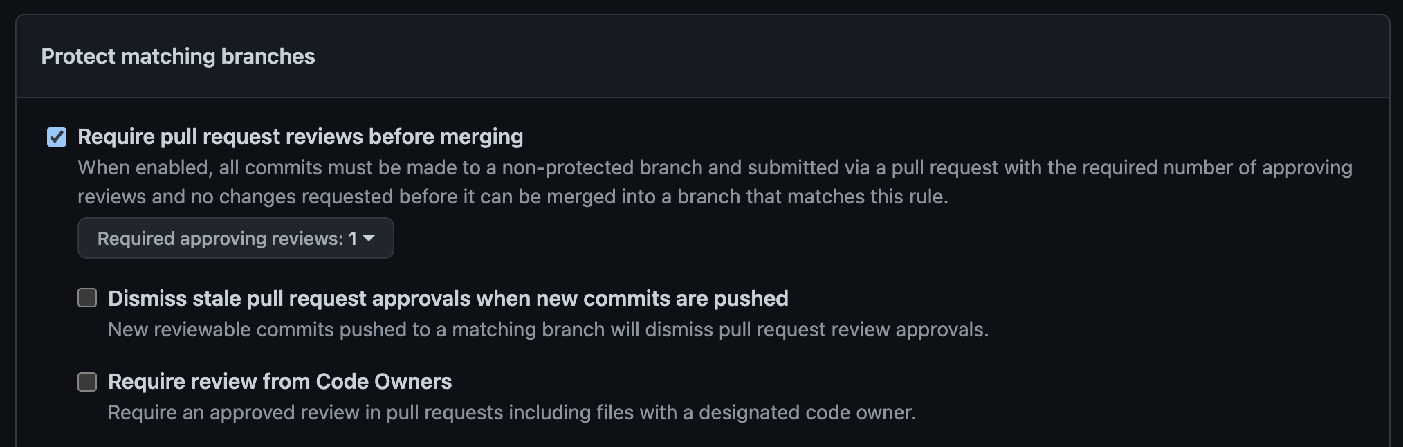 開発速度にも影響出るので、最低レビュー1個必要と設定すればとりあえず良いでしょう。