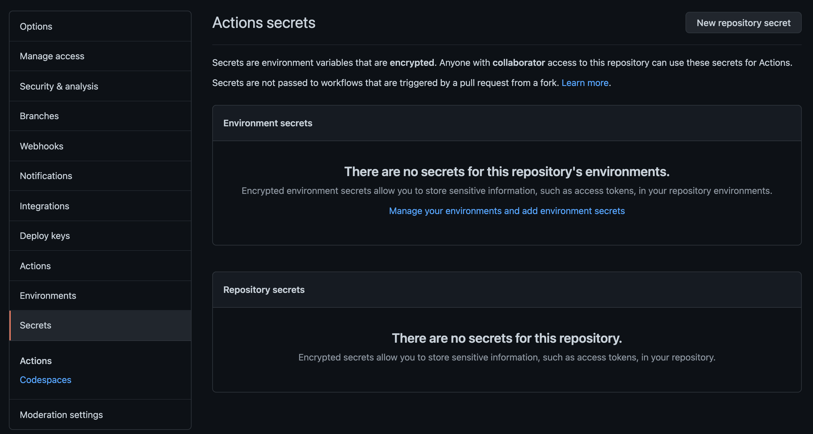 Settings > Secrets > Actions secrets