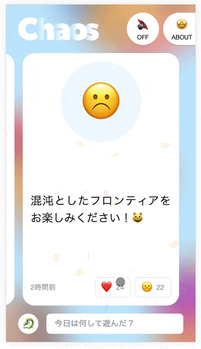 でもクソアプリなのでトレンドとは逆を行き、「カオスなインターネットを愛したい」というコンセプトで今回Chaosを作りました。