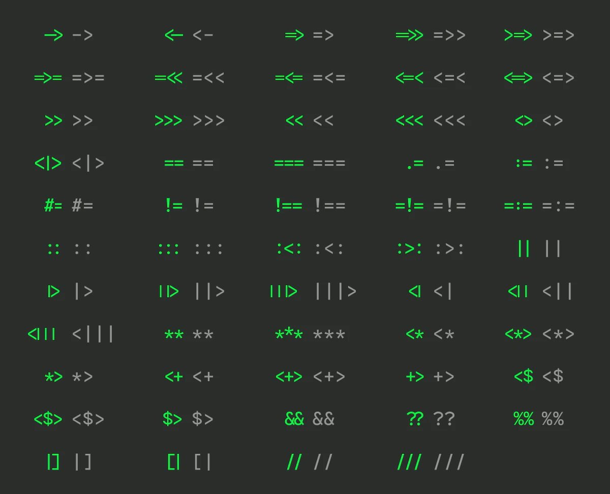 もちろん、リッチなリガチャが好きな人もいるでしょう。その場合は0xProtoの代わりにFira CodeやJetBrains Monoなどのフォントを使うのが良さそうです。