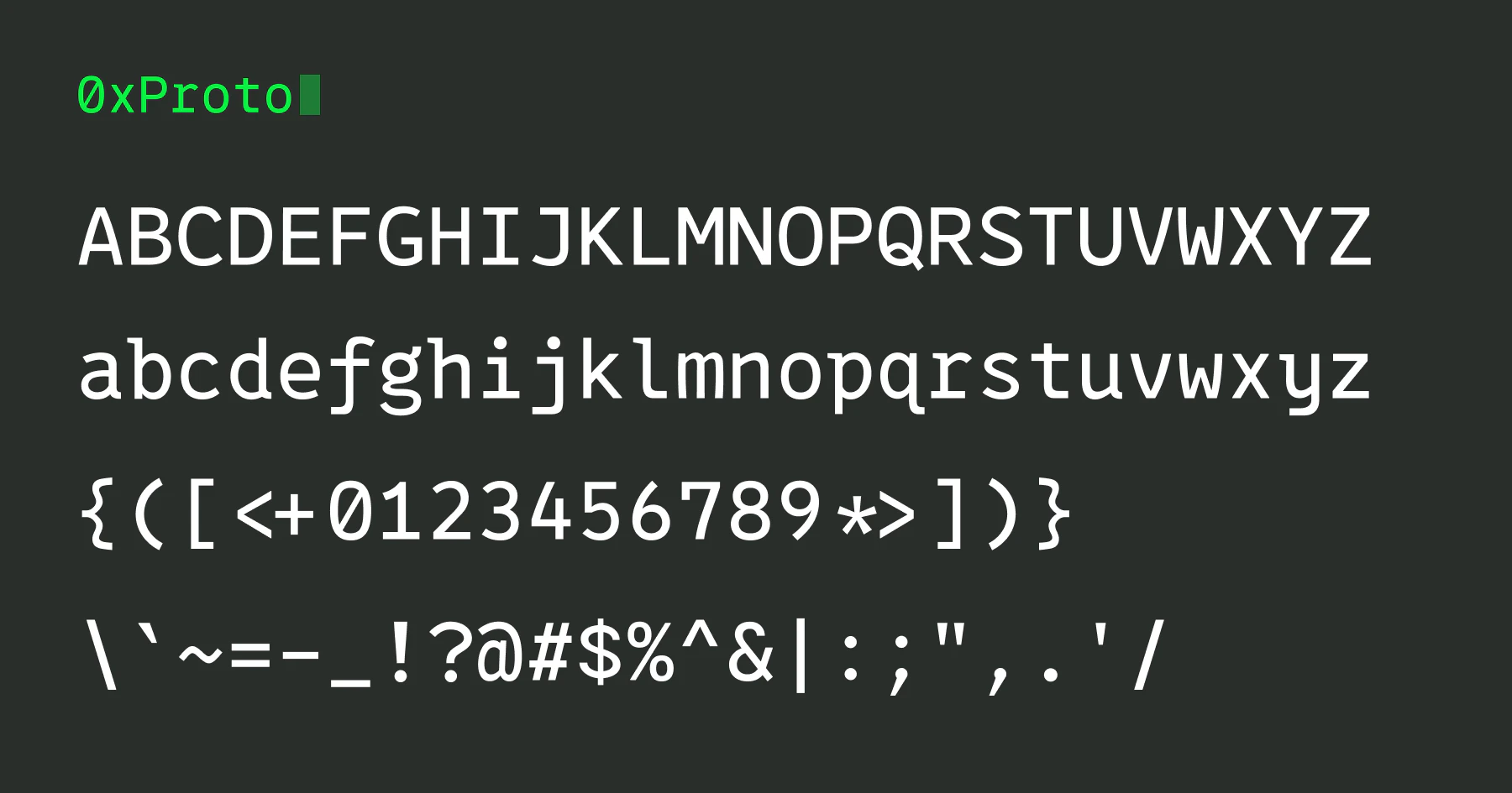 0xProtoは、プログラミング向けのフォントとしてデザインされている、文字の識別がしやすい字形の等幅フォントです。