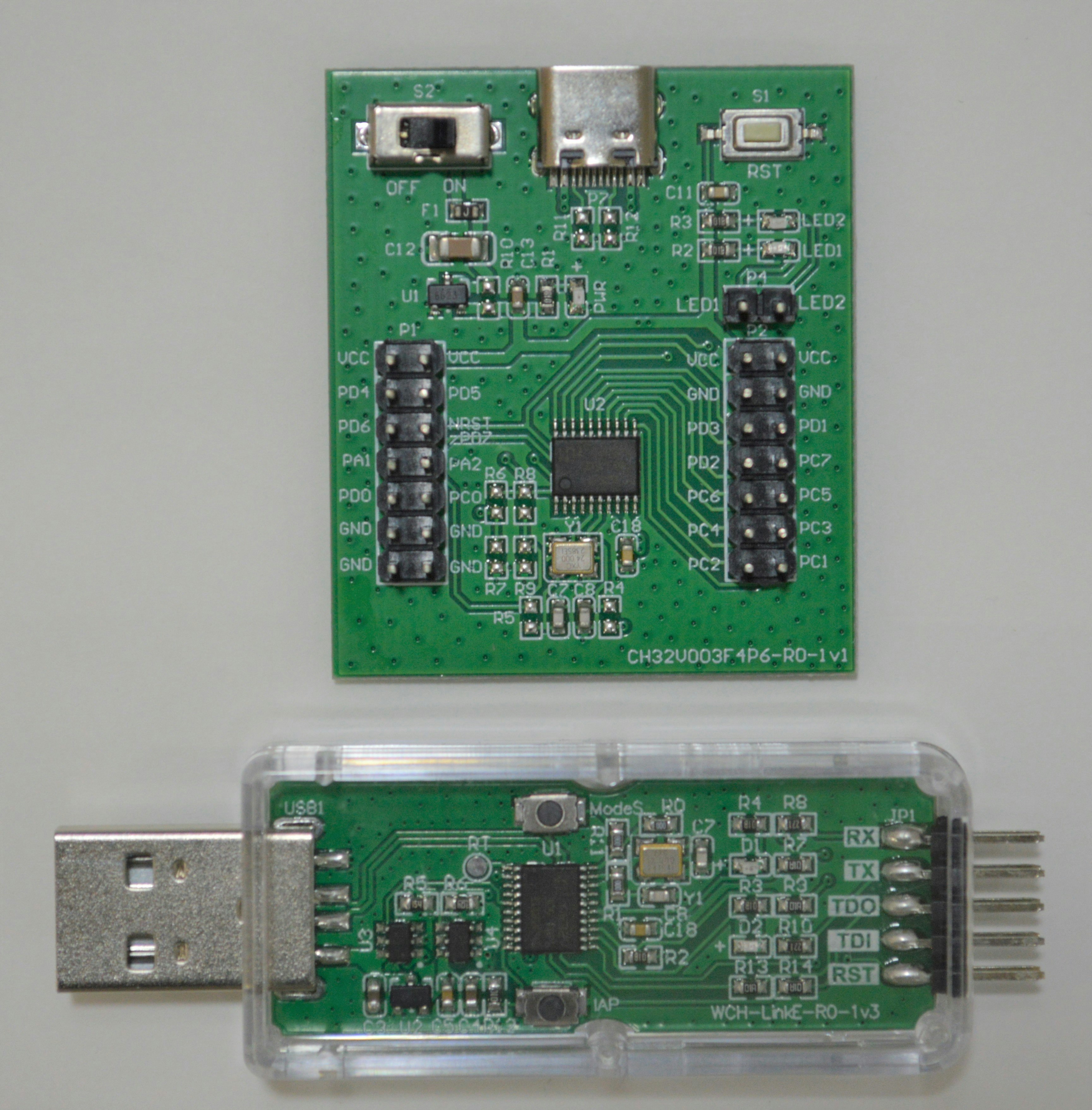 Evaluation Boardとデバッガー、サンプルとしてCH32V003マイコンが5個したものがAliexpressで1000円弱で購入可能です。(送料込みで1300円程度)