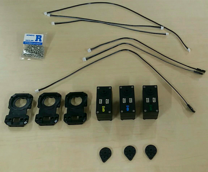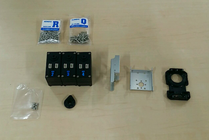 サーボにIDのシールが貼ってあってあるので、説明書の配置と同じになるように組んでいきます。