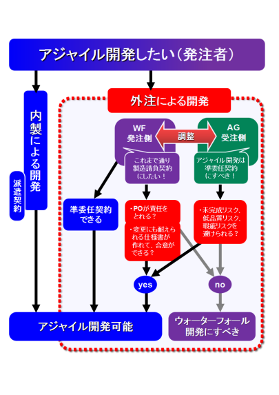 発注社側の経営幹部はアジャイル開発に適合する組織に変えていかなければいけません。同様に受注社側の経営幹部もアジャイル開発に適合する組織にしなければいけない場合があります。