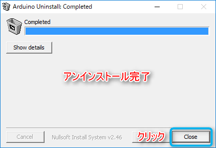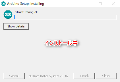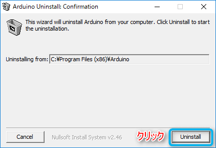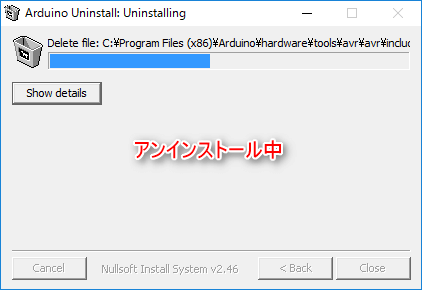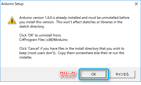 この表示が出た場合は古いArduinoIDEがインストールされるので、アンインストール作業が始まります。