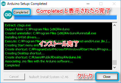 インストールが完了するとCompletedと表示されたらインストール完了です!