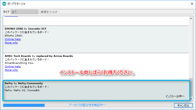 それから上に書いてある新規インストールの手順に従いボードのインストールをしてください。