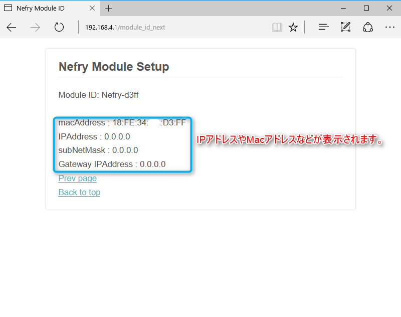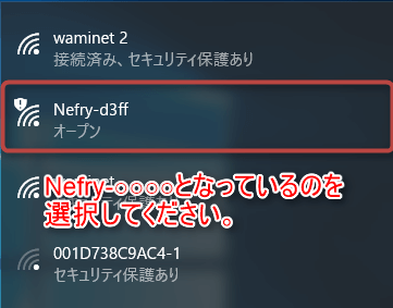 NefryがWiFiの信号を出しているので、そのWiFiに接続します。