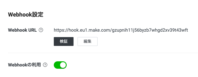 - Webhookを設定します。