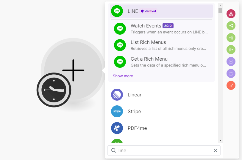 lineを検索。表示されるWatch Eventsをクリックします