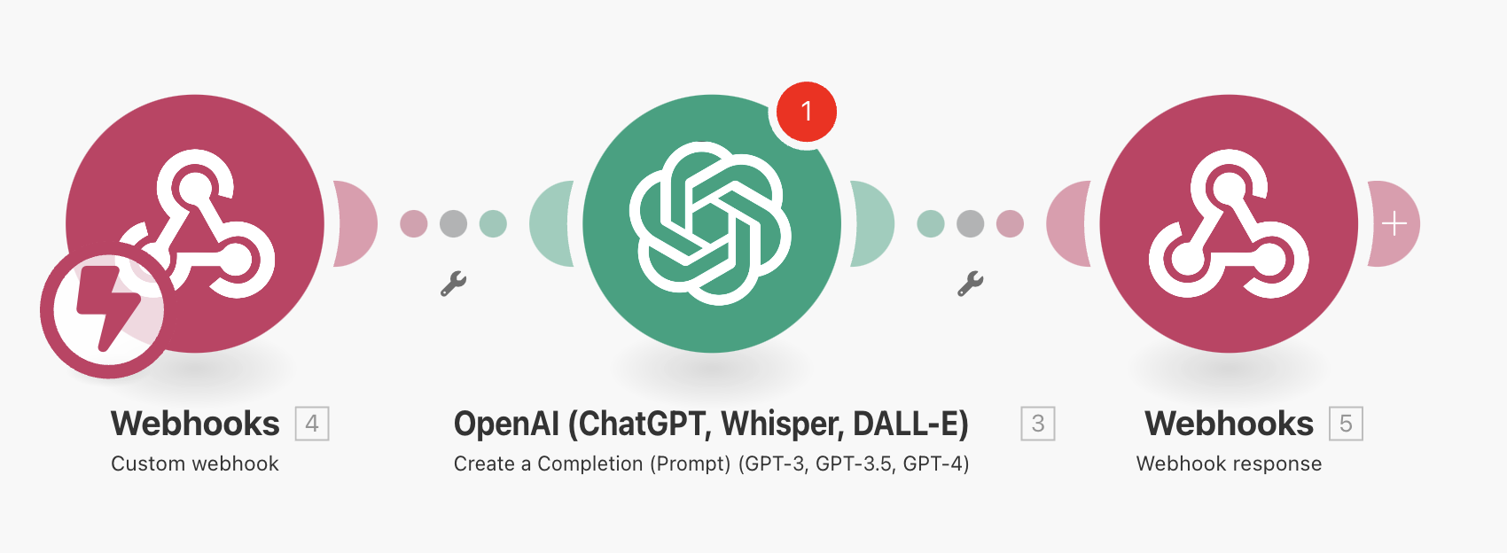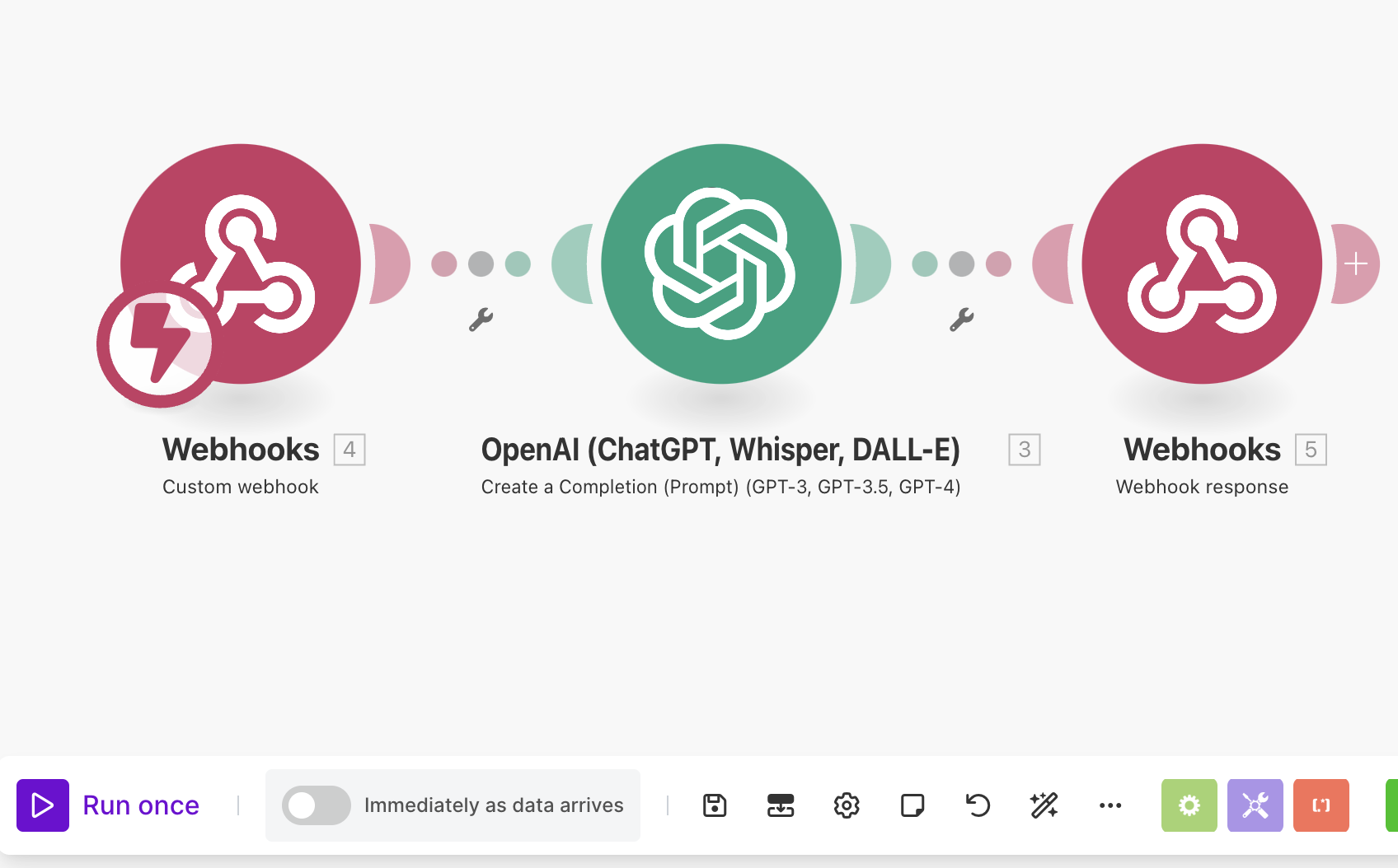 - 末尾に同様のwebhooksモジュール(webhook response)を作ったら完成です