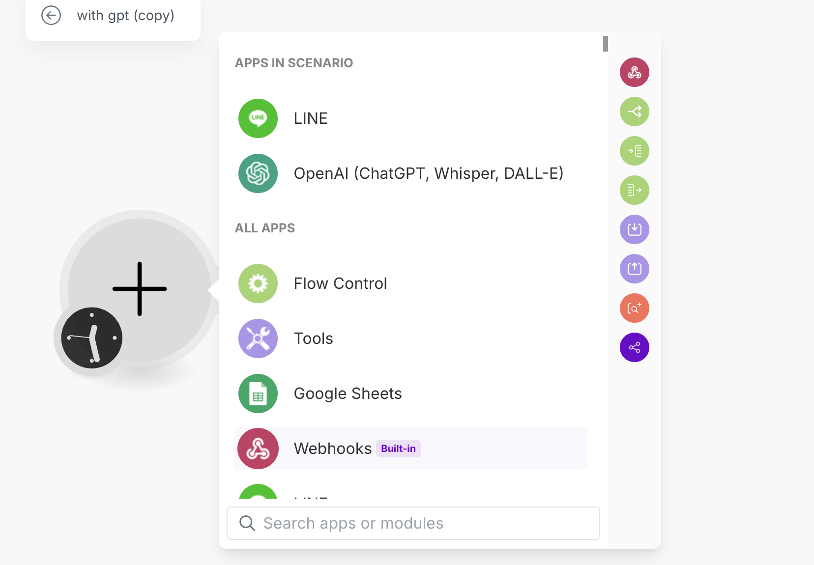 1.1.1. 両端のLINE モジュールを削除して、webhook モジュールに切り替える