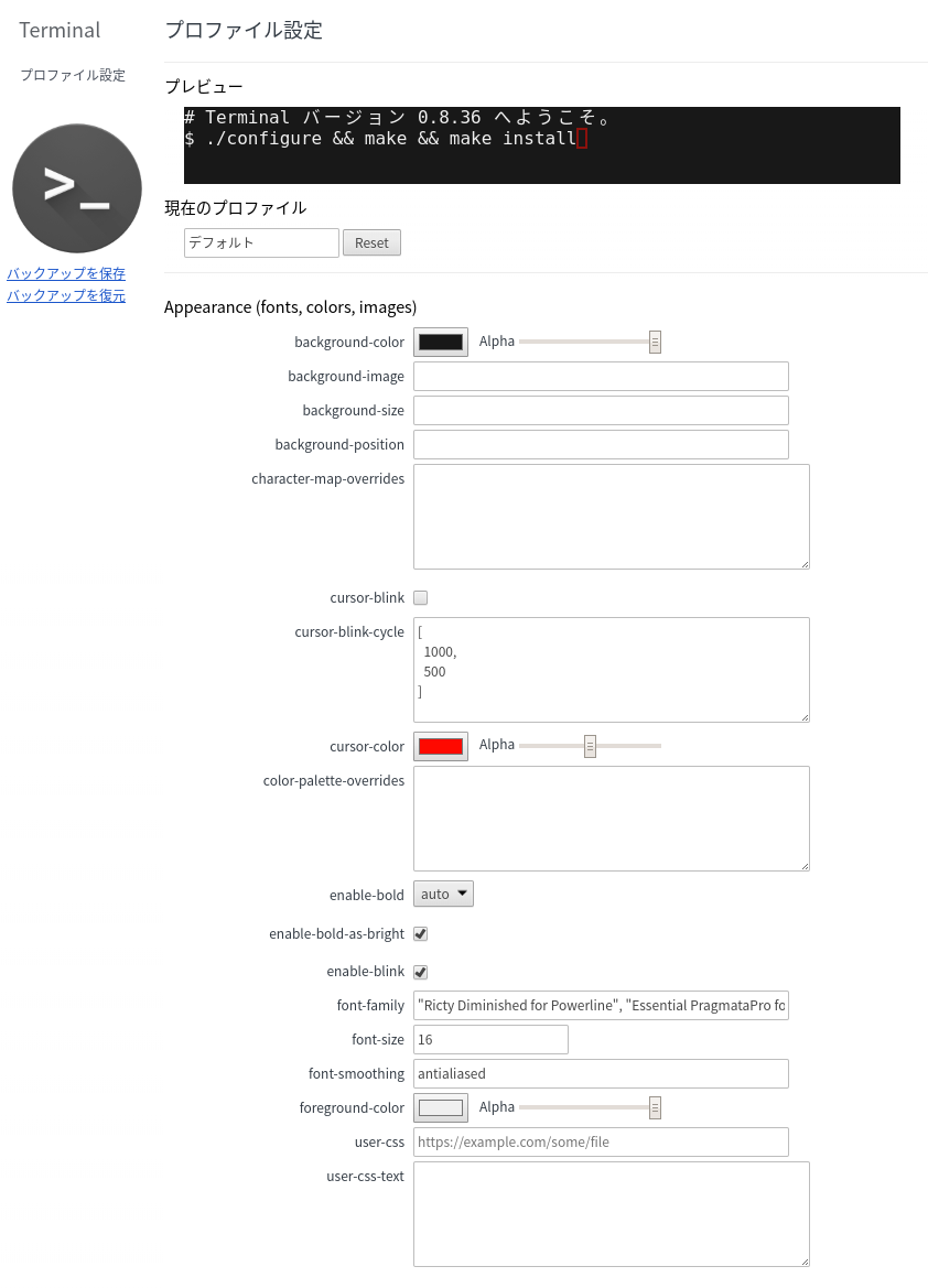そのほかにも地味な制限があり、インストールしたフォントが標準のTerminalでは読み込めないようです。