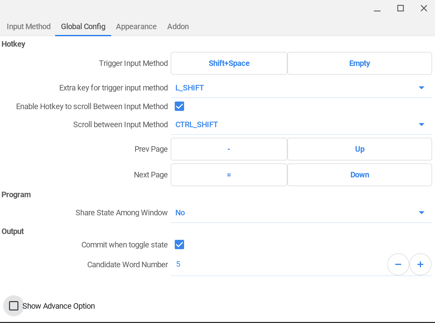 設定画面では入力メソッドのショートカットなどが変更できます。