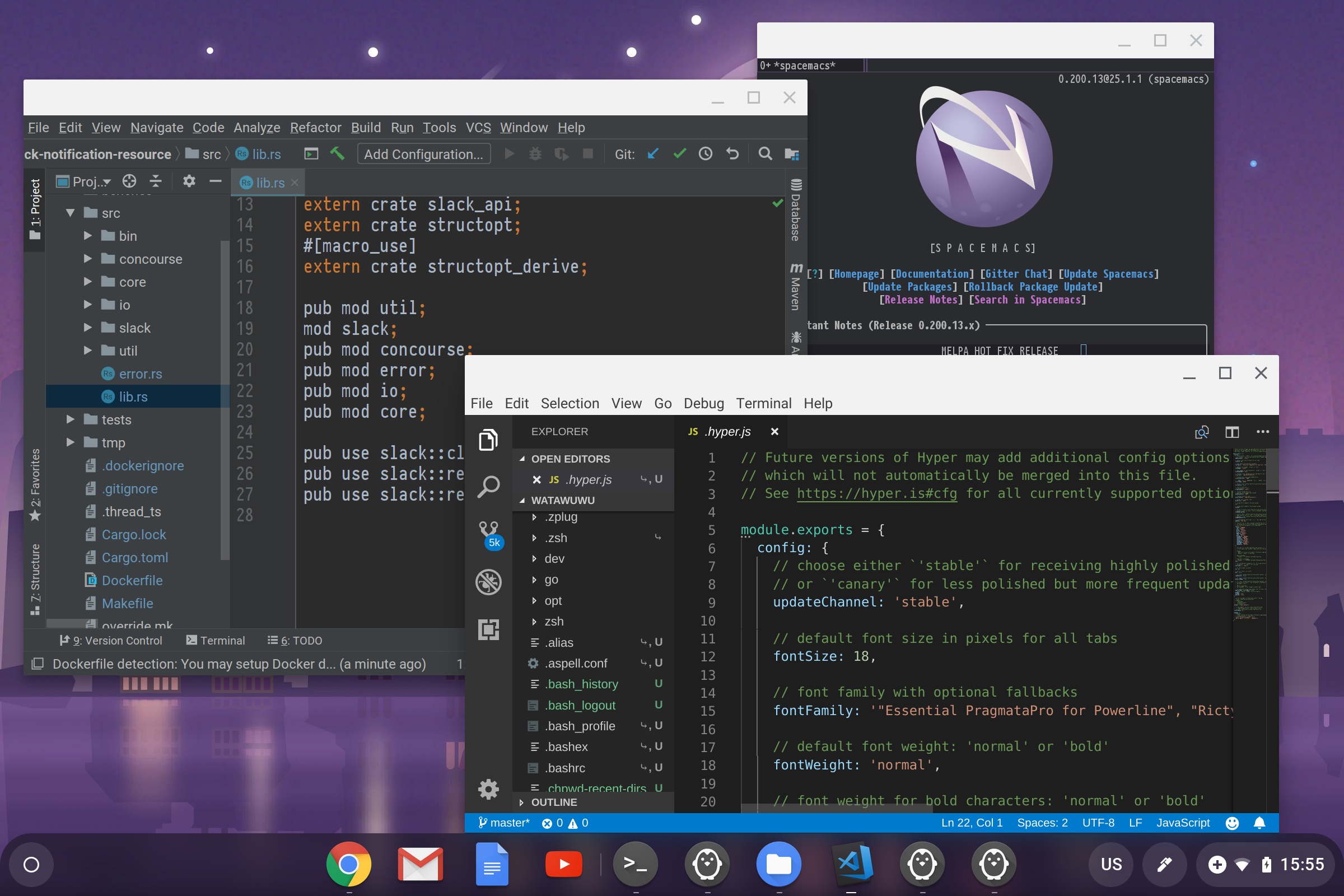 そこで最近、ハイスペックな構成も選択でき、Linuxコンテナが起動できるChromebookであれば、上記の問題をクリアできそうなので検証をしたいと思います。