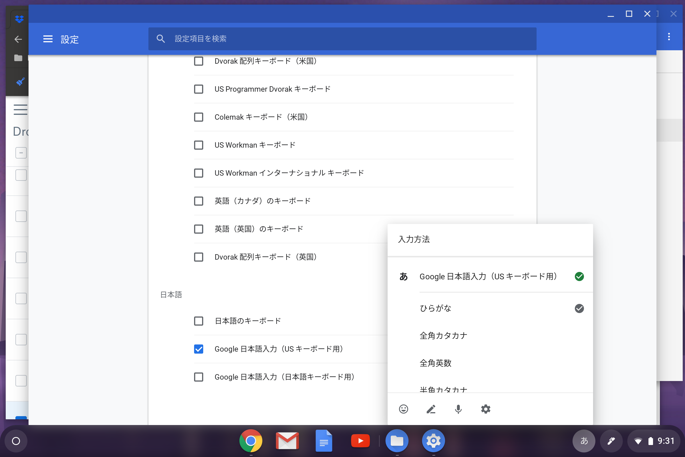 日本語入力の設定はChrome OS側とLinuxコンテナ側、それぞれで設定が必要です。
