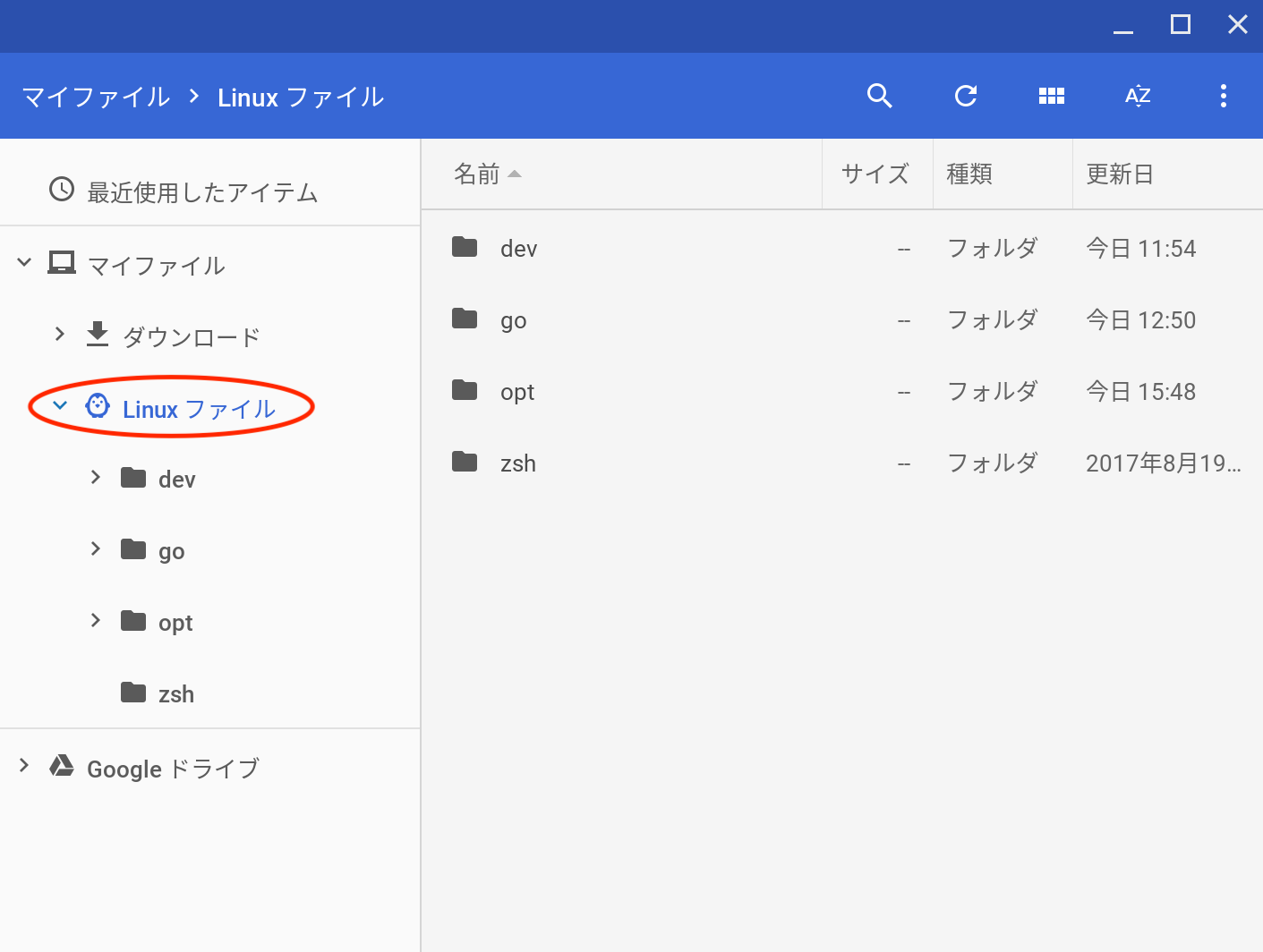 Chrome OSとLinuxコンテナのデータ共有は、Crostiniの場合特別な設定は不要です。