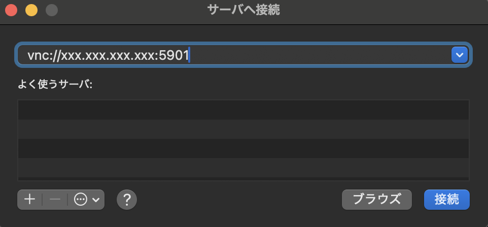 Finder - [サーバへ接続...] より、vnc:// kali linuxのIP:5901で接続する。