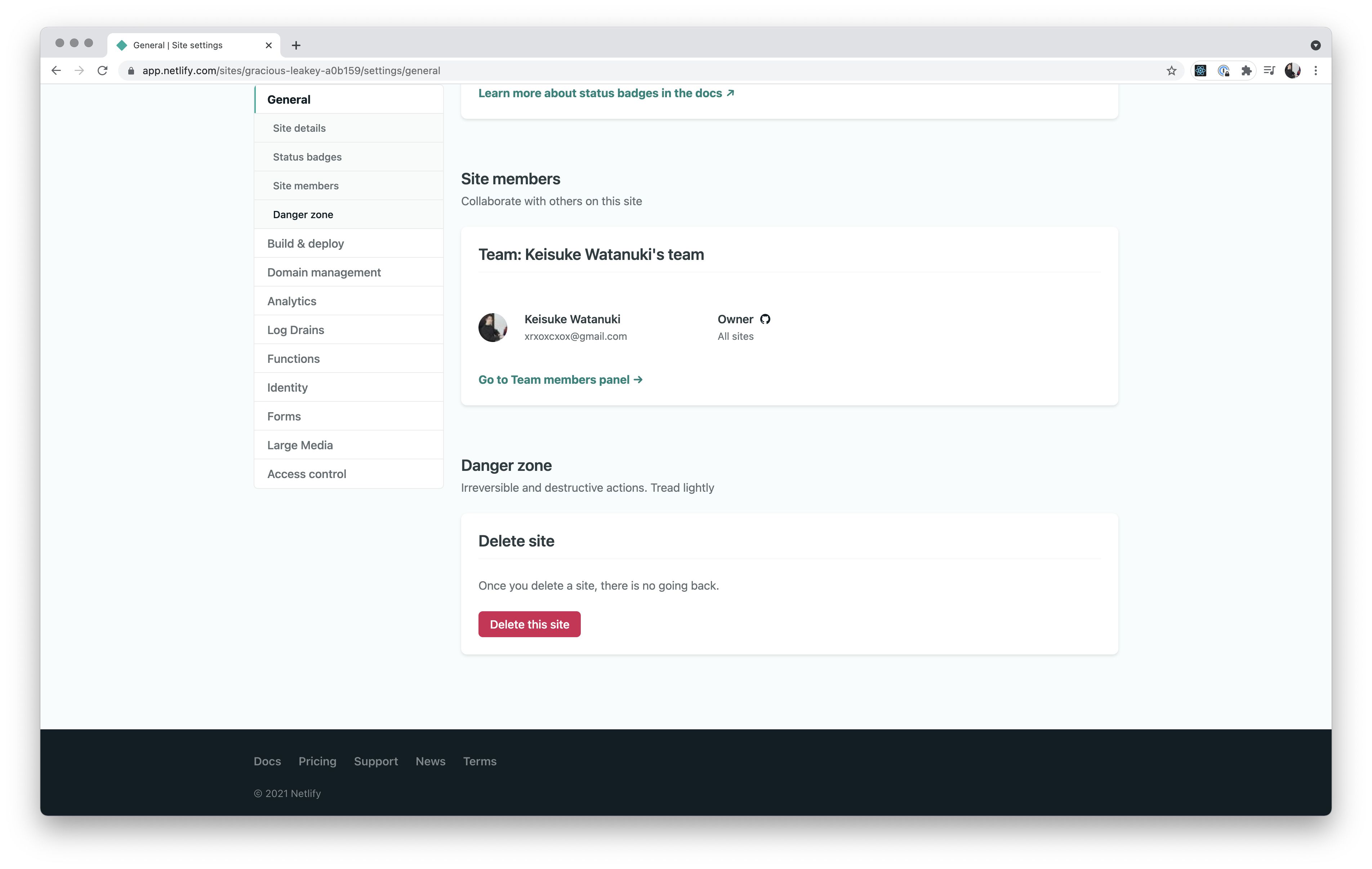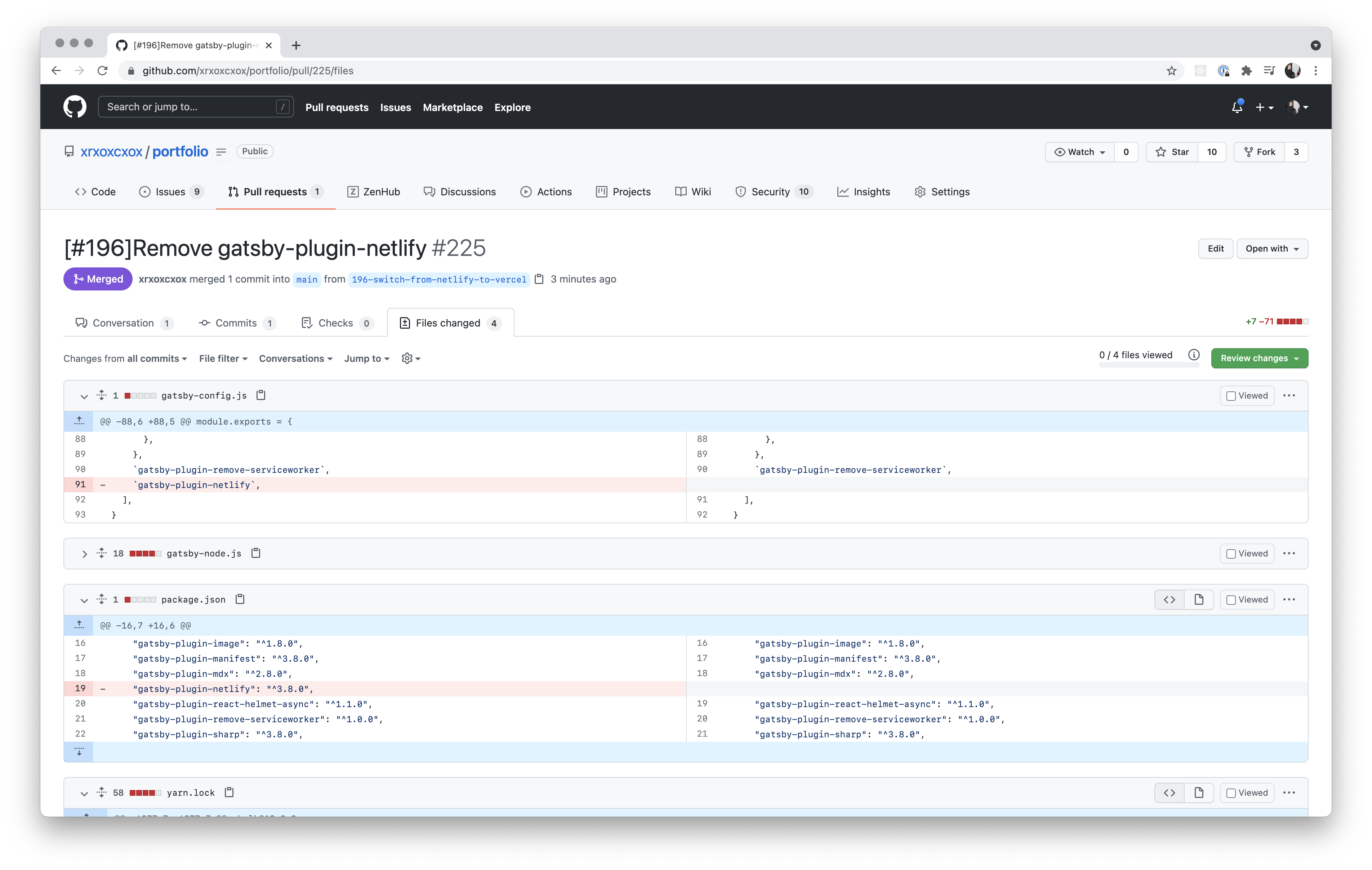 Gatsbyを使っているサイトなので、Netlifyのプラグインを削除