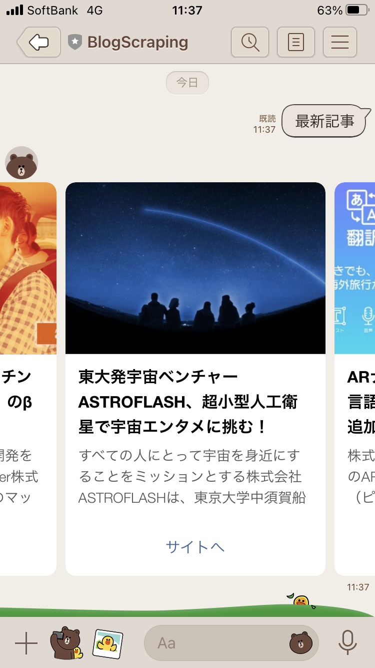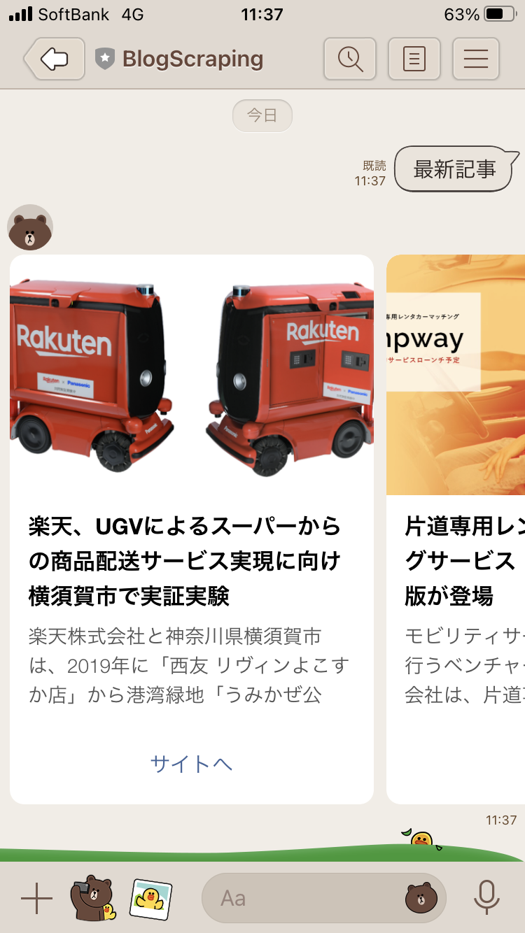 最新記事 と送信すると、その時の最新記事の一覧を返してくれます。