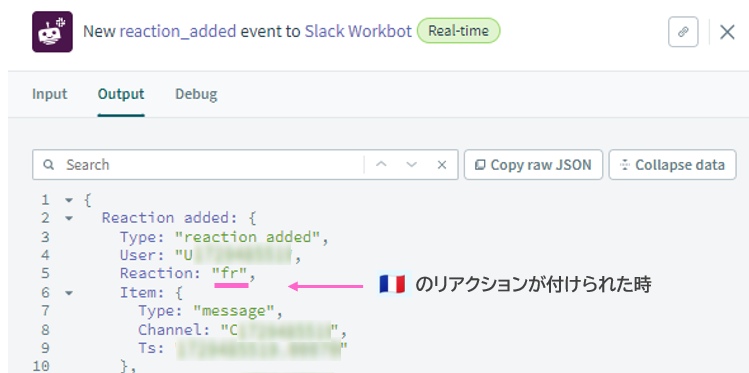 reaction_addedイベントを受信した際に取得される値をセットします。