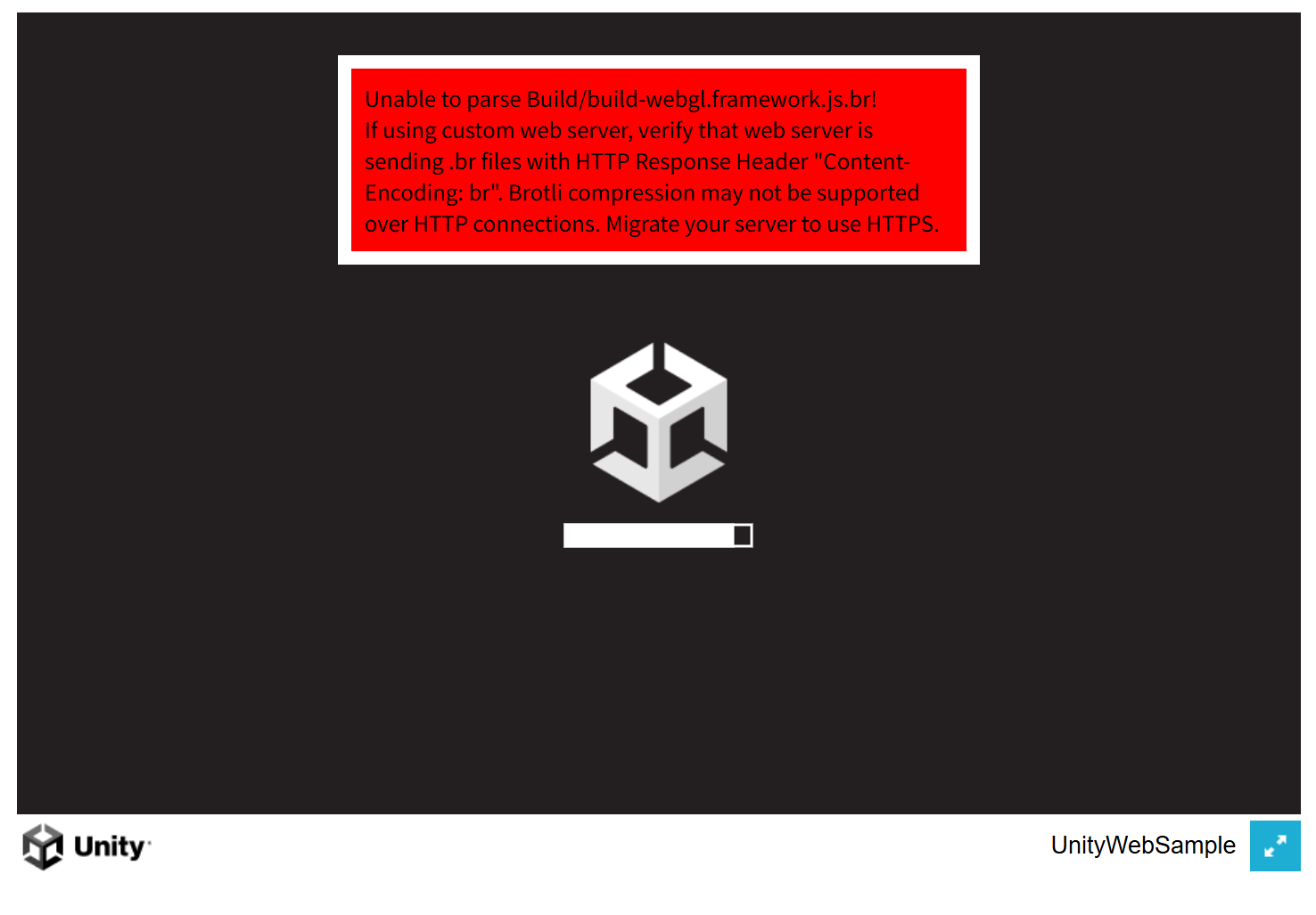 UnityのWebGLビルドで圧縮を行っている場合、正しくレスポンスのヘッダを設定しなければ以下のようなエラーになります。